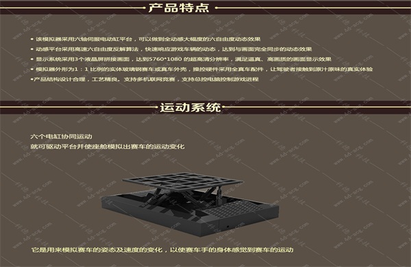廈門惠拓科技有限公司的動感駕駛模擬器,采用伺服電機(jī)驅(qū)動,通過機(jī)械傳動技術(shù)、精密傳感技術(shù)、計算機(jī)通信技術(shù)、計算機(jī)軟件控制技術(shù)、單片機(jī)控制技術(shù)等來實現(xiàn)汽車駕駛模擬器的動感仿真效果。
